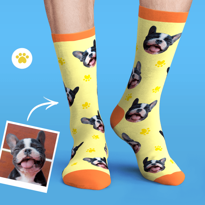 Benutzerdefinierte personalisierte Gesicht Socken Foto Haustier Hund - Knochen und Fußabdruck