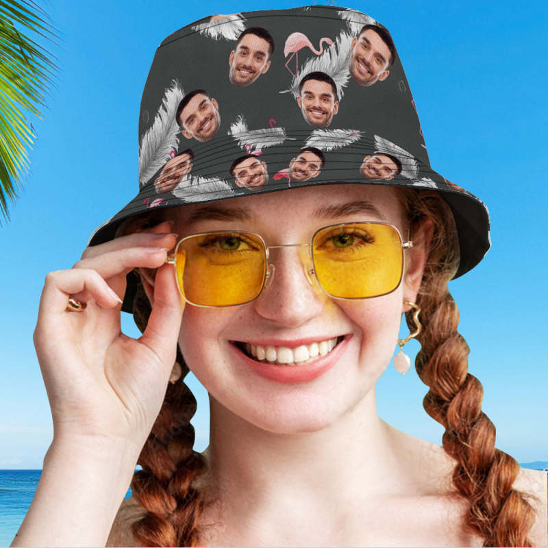 Kundenspezifischer Foto-Geschenk-lustiger Cartoon-Flamingo-Eimer-Hut-hawaiischer Fischer-Hut
