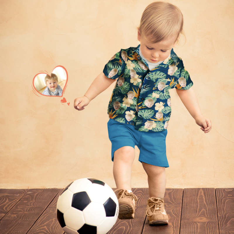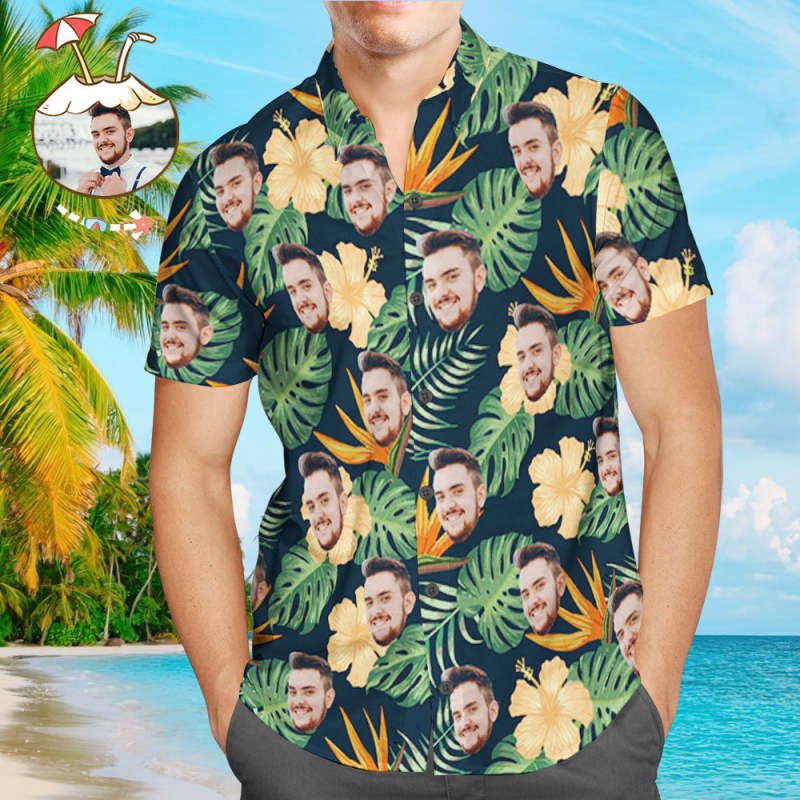 Benutzerdefinierte Foto Hawaiian Shirt Eltern-Kind trägt personalisiertes Gesicht Hawaiian Shirt Geschenk für Familie mit gelben Blumen
