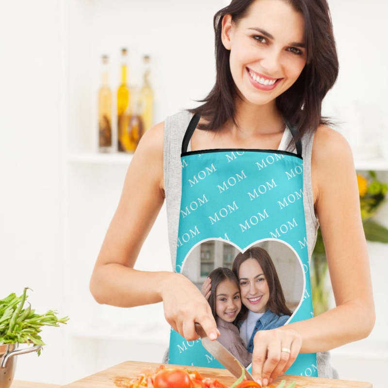 Kundenspezifische Fotos Herz-küchenschürze Personalisierte Aquamarine Blaue Küchenschürze, Die Geschenk Für Mamma Kocht