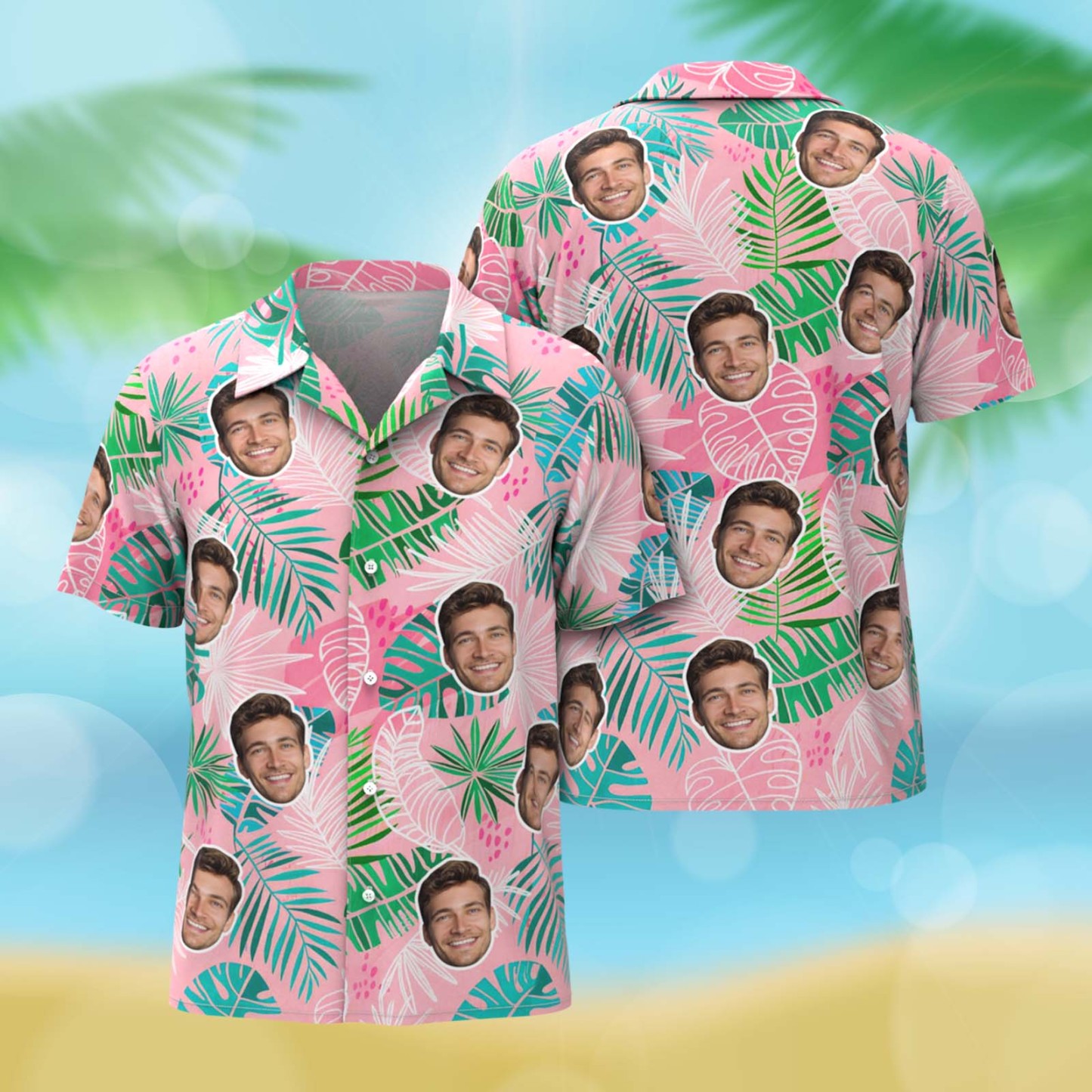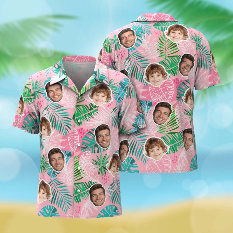 Personalisiertes, Pinkes Hawaiihemd Mit Foto Für Damen, Blättermotiv, Geschenkidee Für Mama