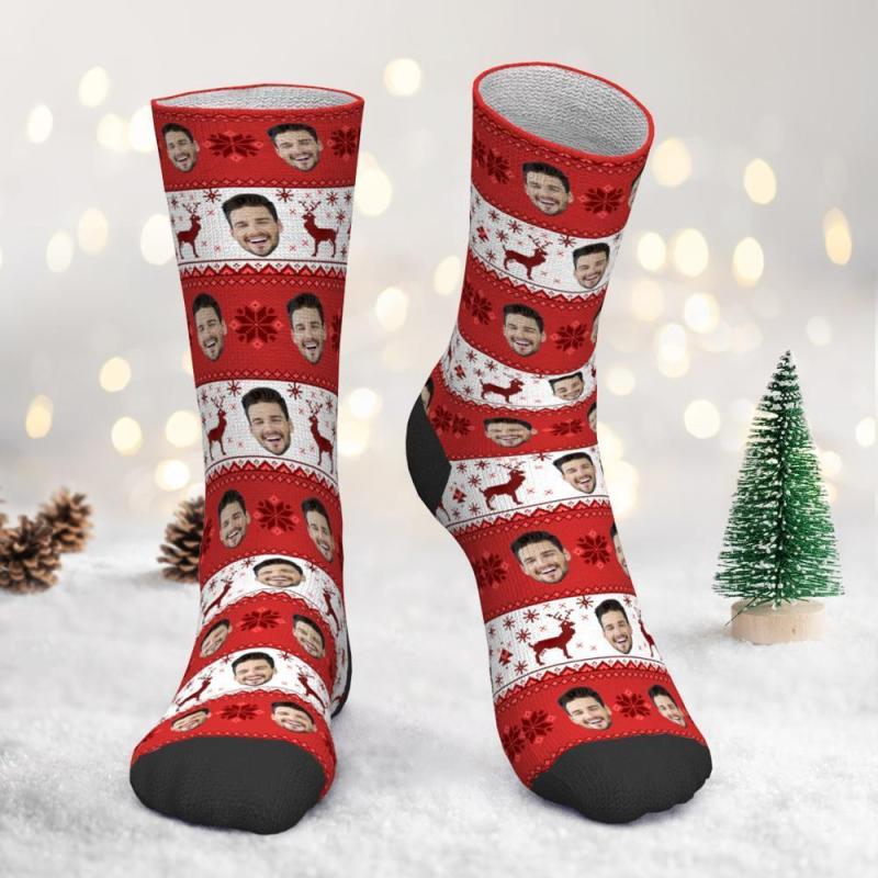 Benutzerdefinierte Fotosocken Weihnachtssocken Weihnachtsgesichtssocken Mit Nordischem Muster