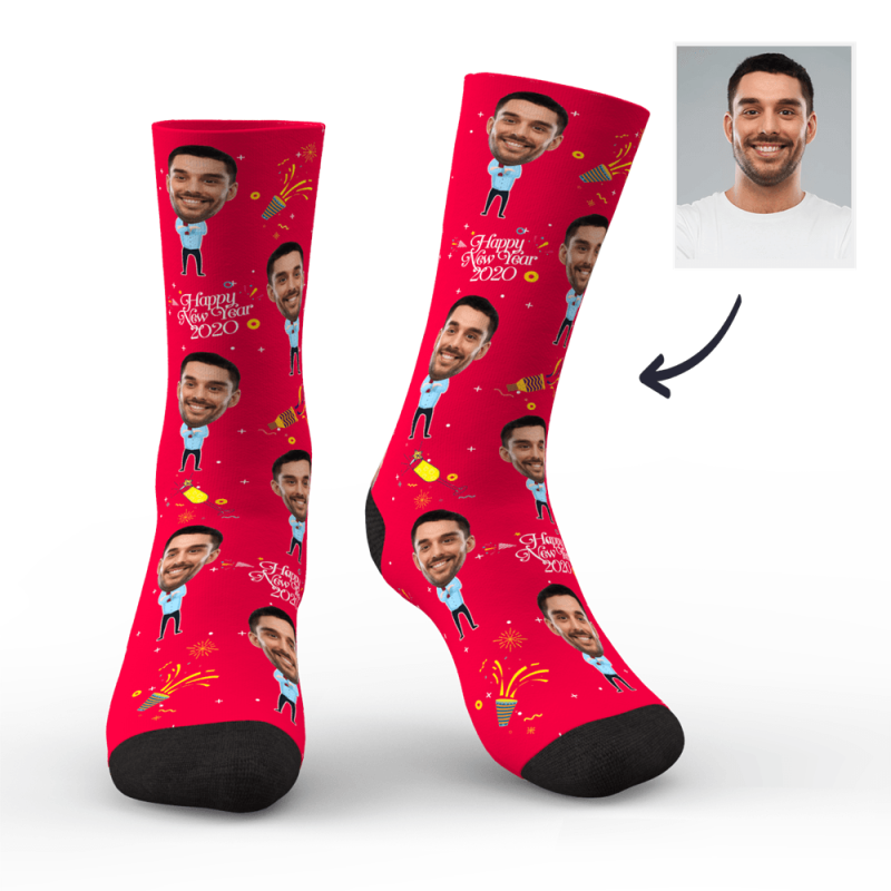 Kundenspezifische Gedrukte Gesicht auf Socken 2020 Happy New Year