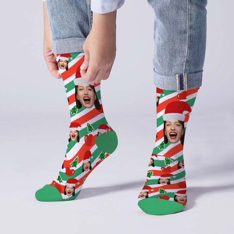 Benutzerdefinierte Santa Hats Face Socken Herz Diagonale Streifen