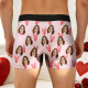 Diese personalisierten Boxershorts sind mit individuellen Gesichtern, süßen Herz- und Kussmotiven und einer frechen, humorvollen Liebesbotschaft verziert – perfekt für Paare, die gerne lachen, romantische Momente lieben und es gerne etwas frecher mögen.