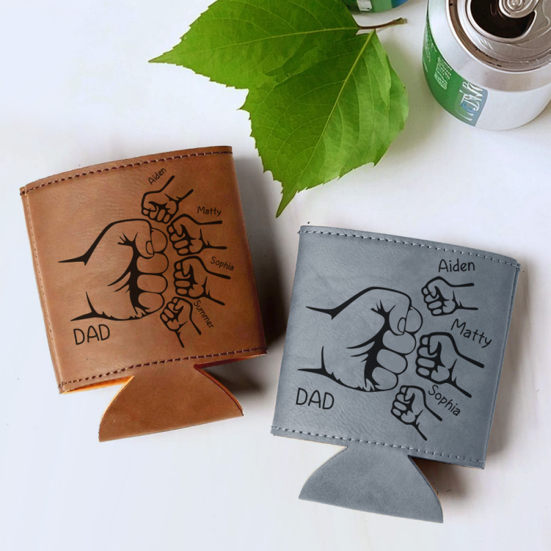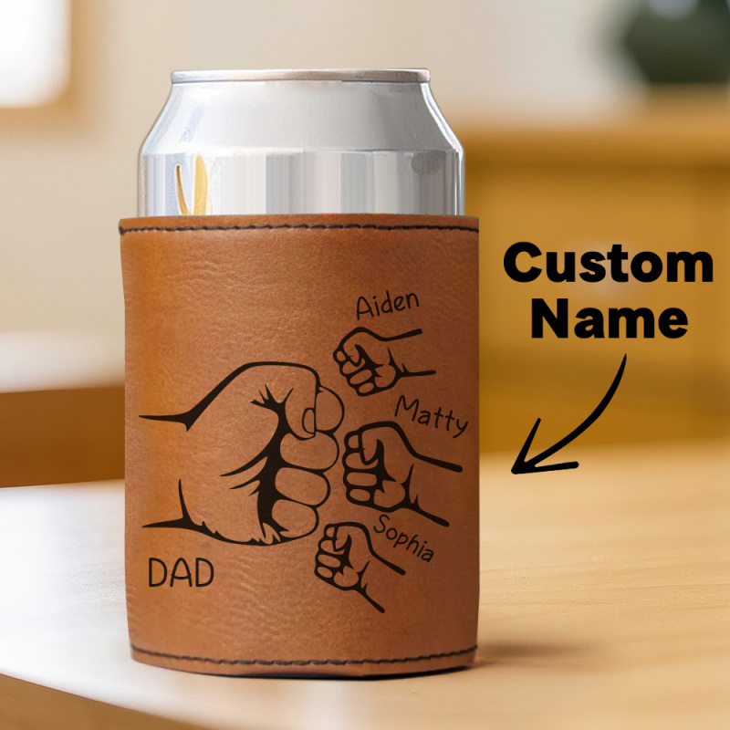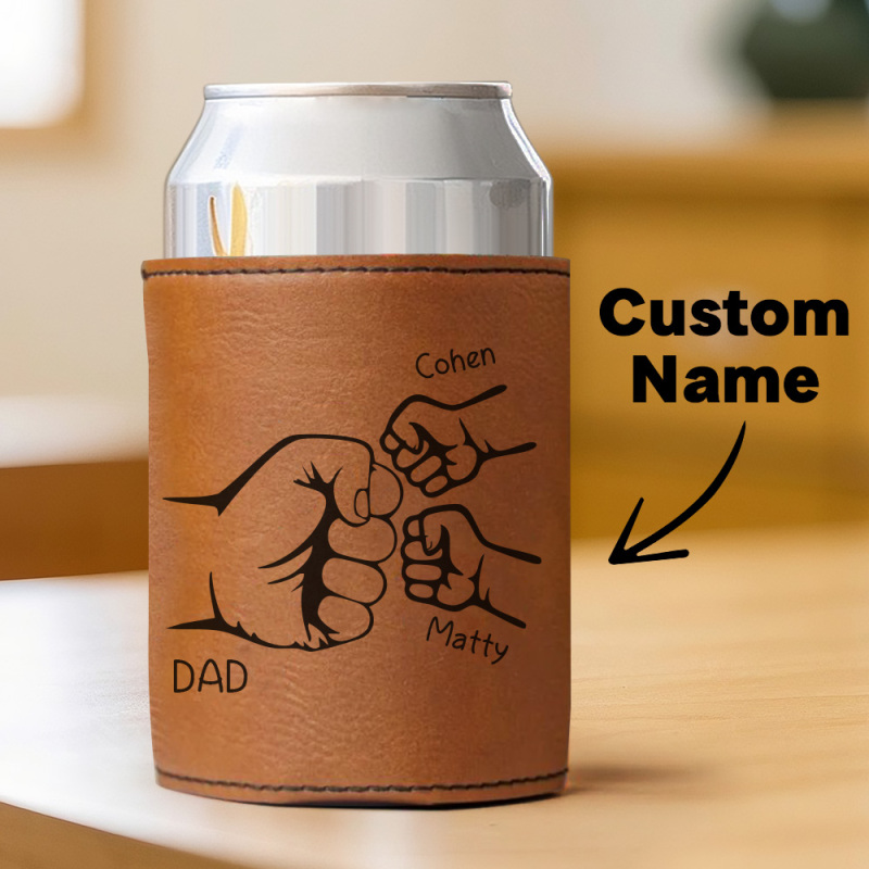Dad Fist Bump Leder Dosenkühler, Vatertagsgeschenk Mit Kindernamen, Papa Geschenke Von Kindern Papa Geburtstagsgeschenk Personalisiertes Geschenk Für Papa, Opa