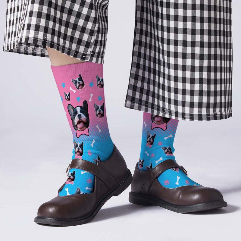 Hundesocken Mit Farbverlauf, Haustiergesicht Auf Socken
