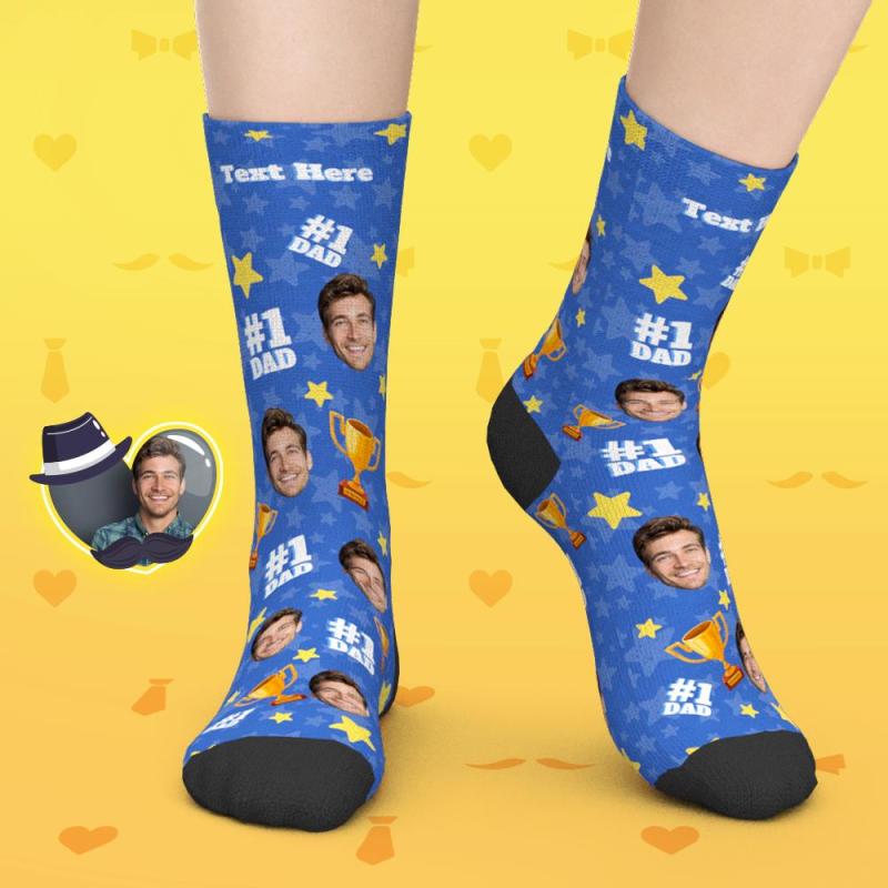 Geschenke für Papa, individuelle Gesichtssocken mit Bildern und Namen – #1 DAD