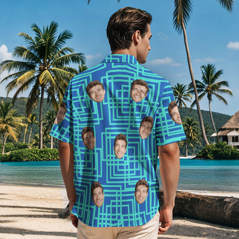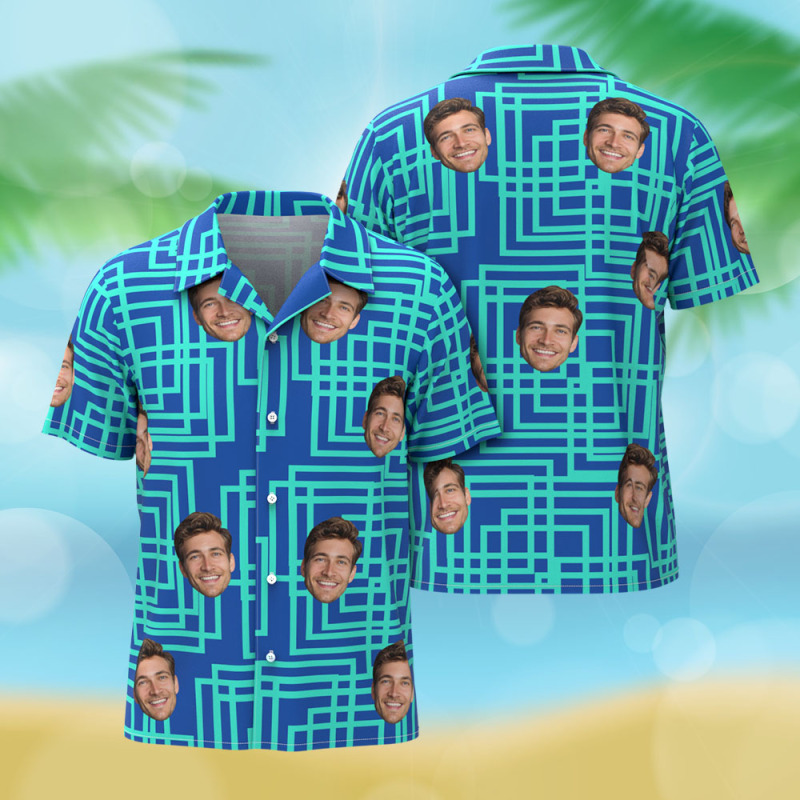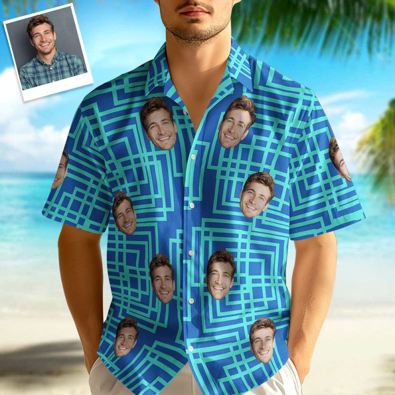 Gesicht Individuelles Blau Gestreiftes Hawaiihemd Cooles Shirt Männer Geschenk Sommergeschenk