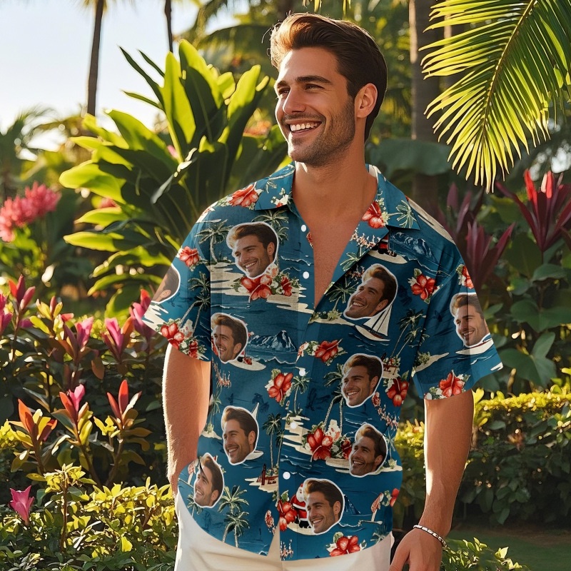 Hawaiihemden für Herren mit Blumen Segelbooten Kokospalmen und Hawaii-Stil