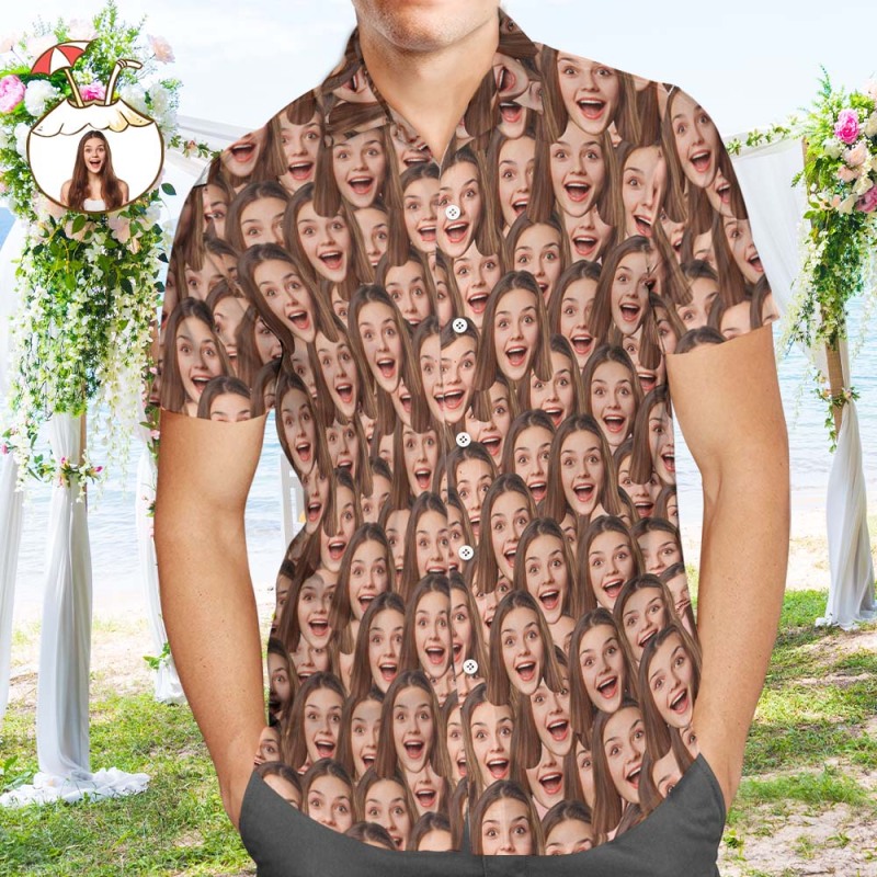Herren Custom Face Shirt Hawaiihemd Kurzarm Brei Hochzeitstag