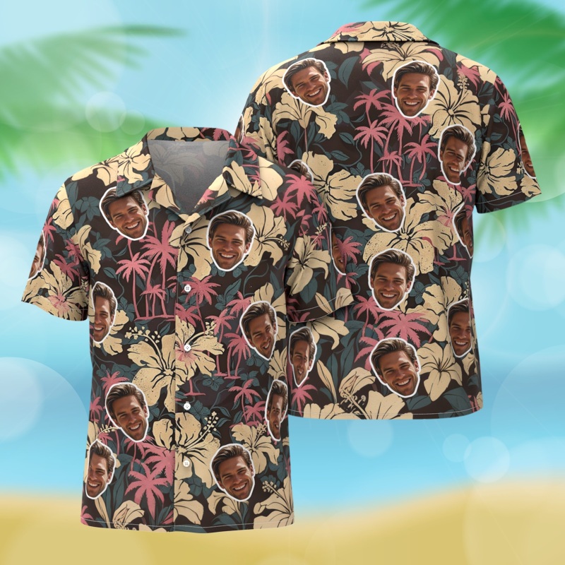 Maßgeschneiderte Herren Hawaiihemd rosa Kokosnussbaum gelb Blumen Hawaii-Stil Geschenk