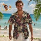 Dieses Hawaiihemd verfügt über einen Aufdruck, einen Knopfverschluss und kurze Ärmel.