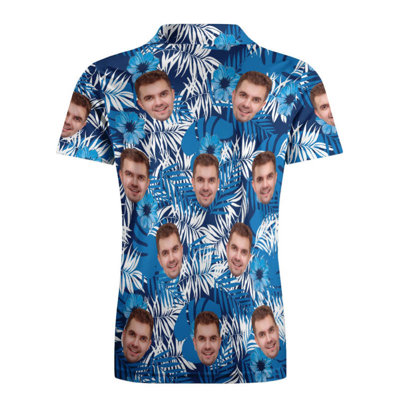 Herren-polo-shirt Mit Individuellem Gesicht, Personalisierte Golf-shirts Für Ihn, Blaue Blätter