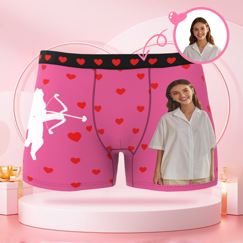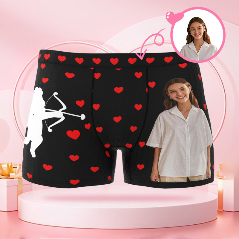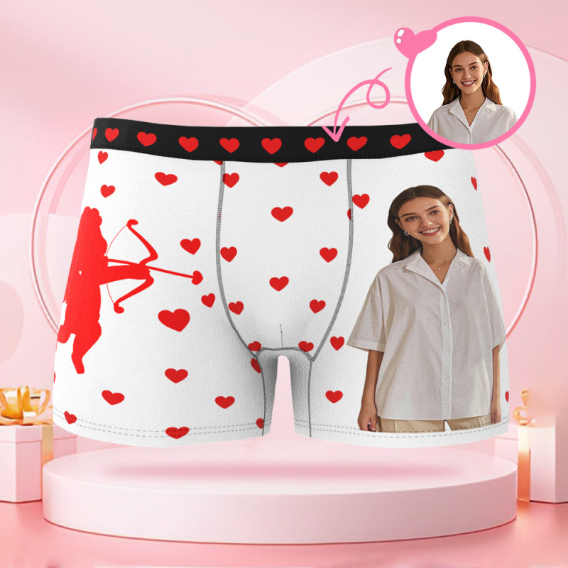Personalisierte Cupid Foto-Slips, Valentinstag-Boxershorts mit personalisiertem Gesicht, Valentinstagsgeschenk für den Freund
