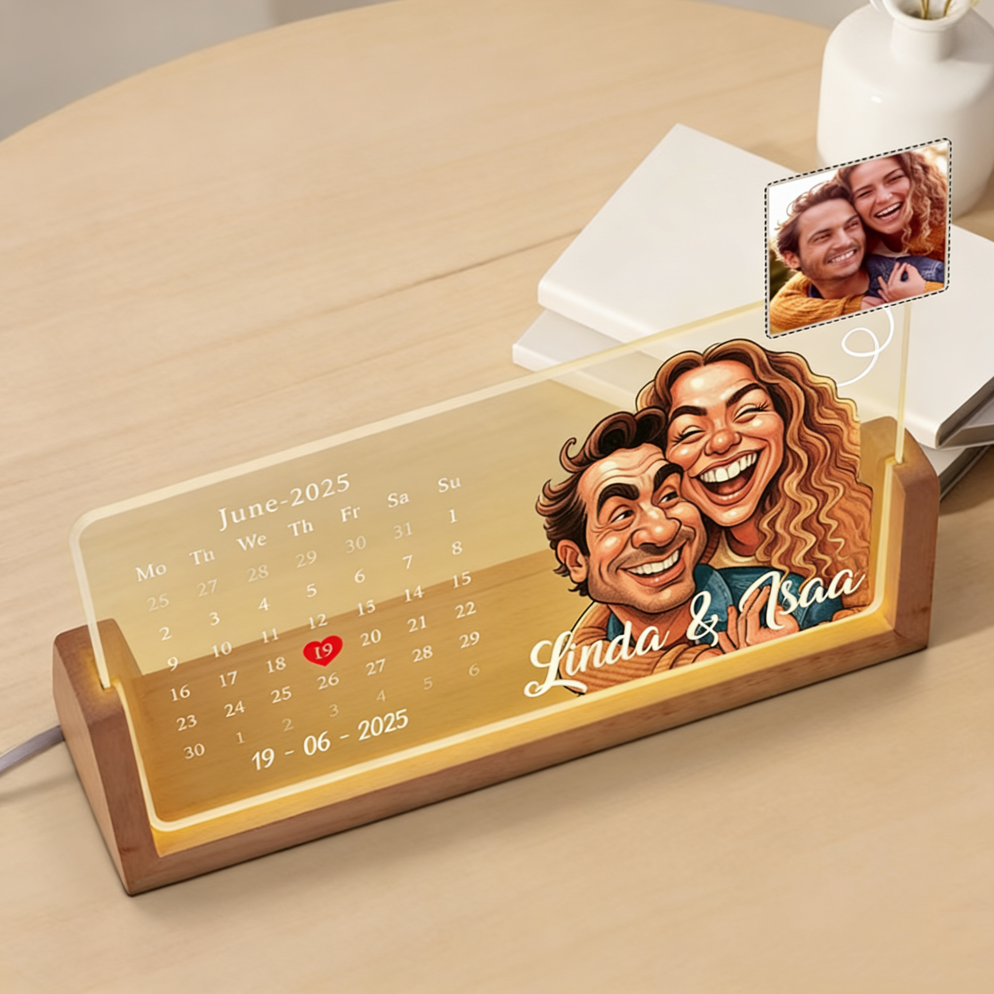 Personalisierter Cartoon-kalender Für Paare Mit Beleuchtung, Individuelle Fotoillustration Als Geschenk Zum Jahrestag, Romantisches Valentinstagsgeschenk