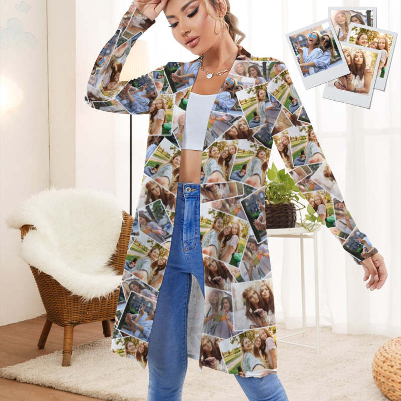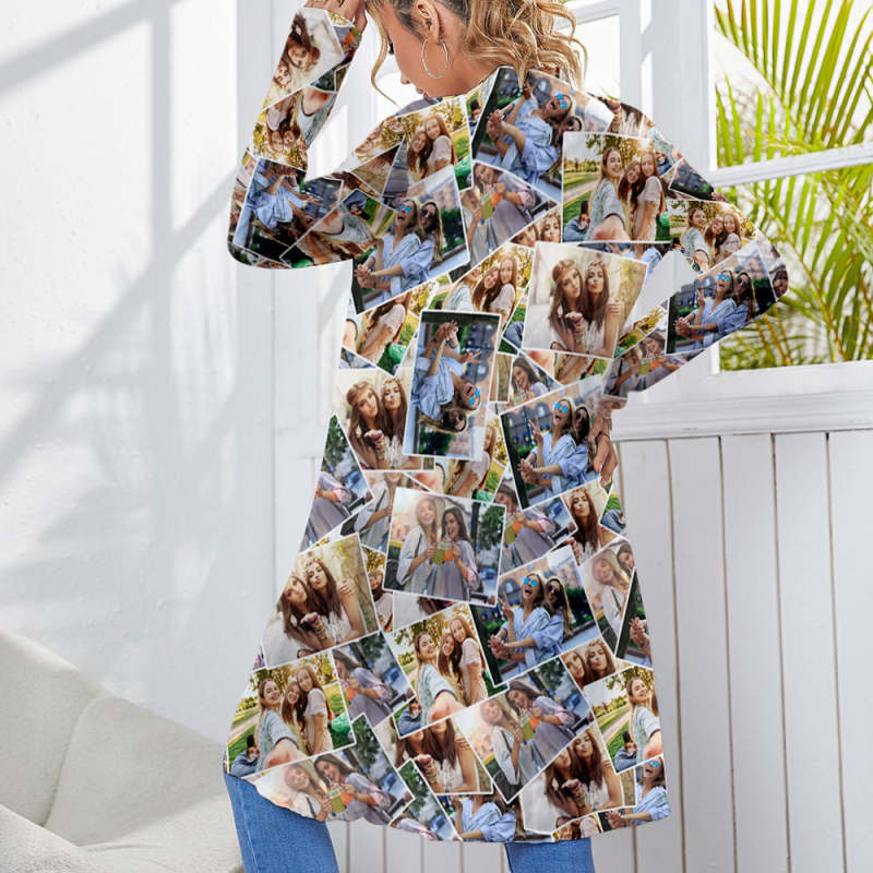 Personalisierter Foto-cardigan Für Damen, Langärmelig, Vorne Offen