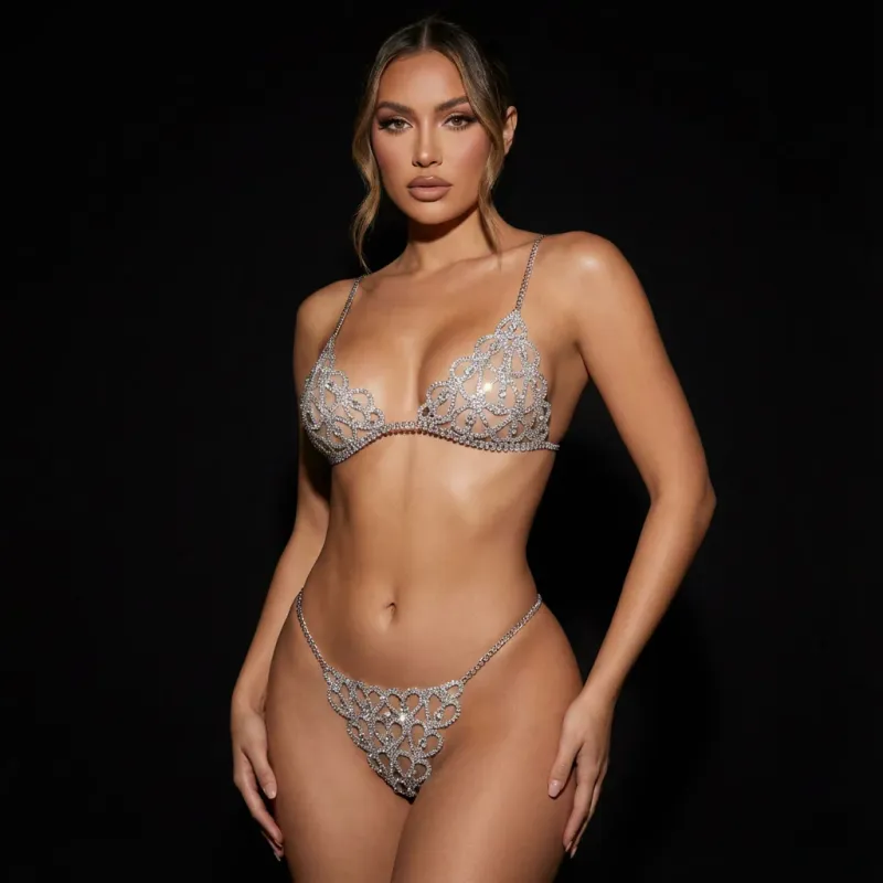 Sexy Kristall-BH & Körperkette SetVerstellbare Passform für Komfort und Flexibilität