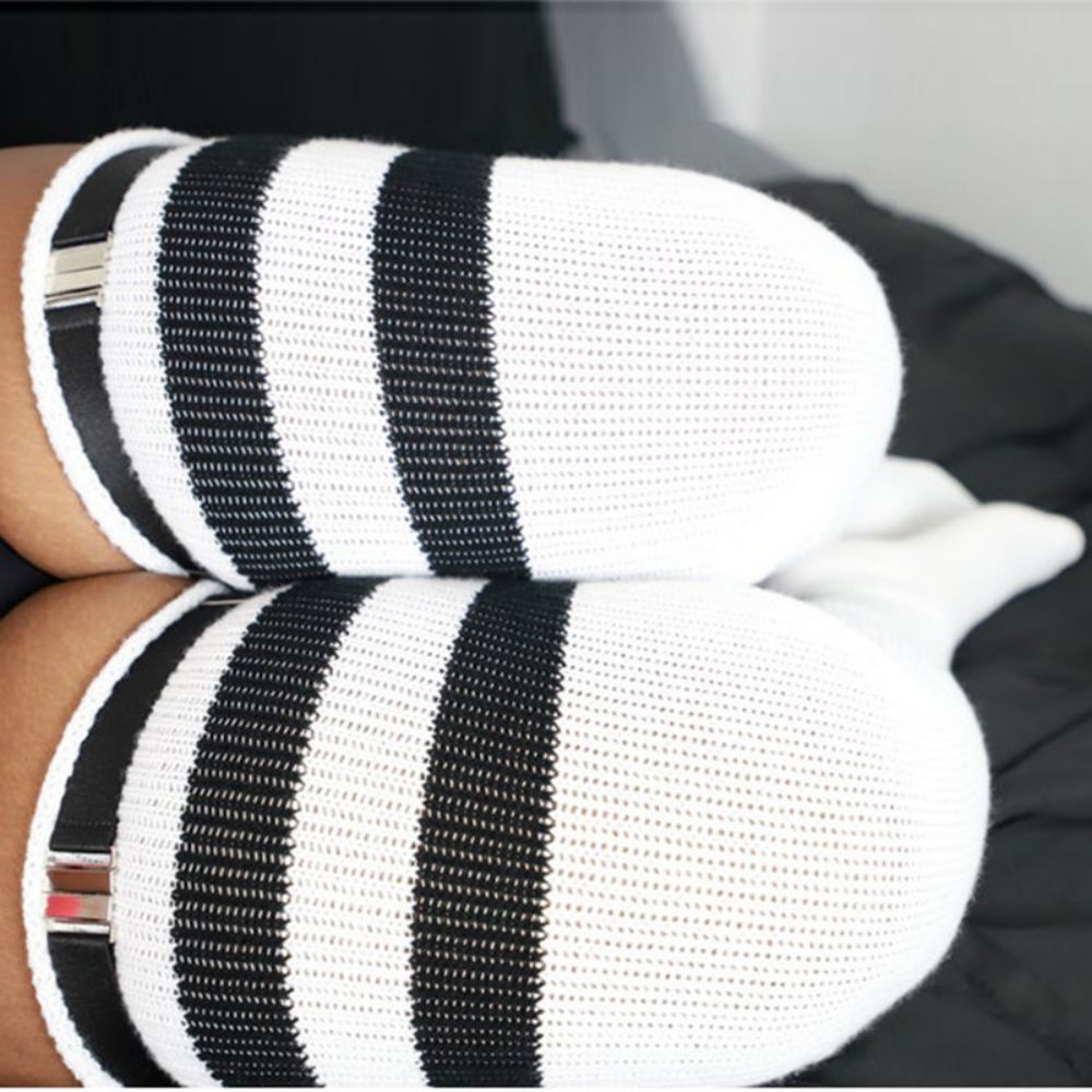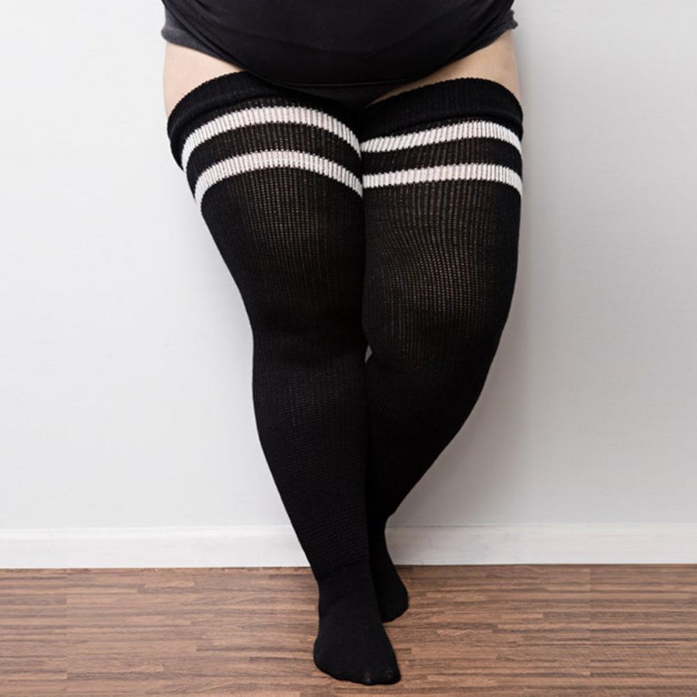 Frauen Winter Beinwärmer große Größe drei Stangen gestreift modisch lange Röhren Overknee Socken